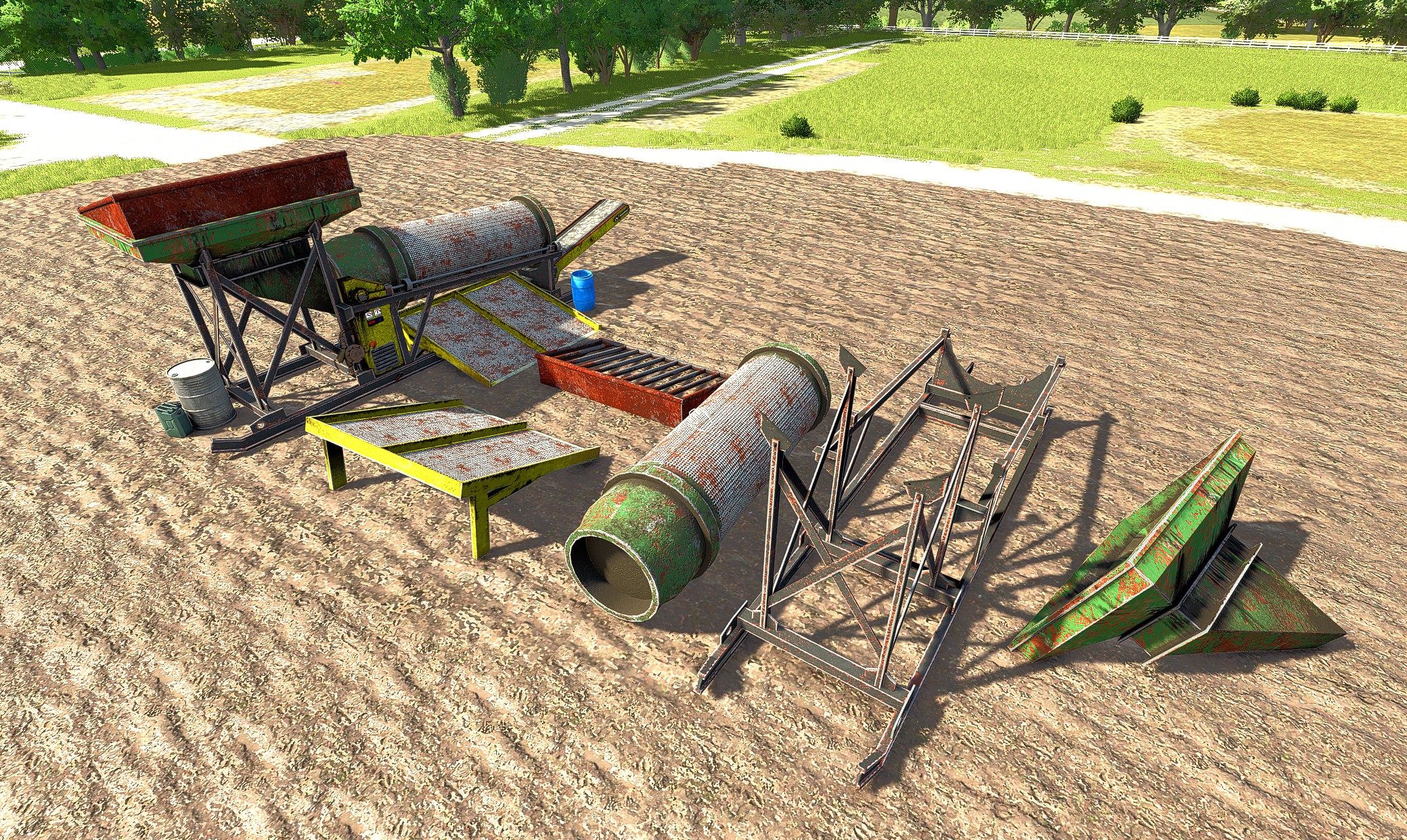 The first modification I made was extracting parts of the trommel as decorative objects, just to add more immersion.